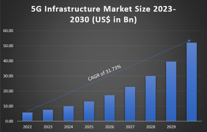 The 5G Infrastructure Market is experiencing a rapid surge in growth as the deployment of fifth-generation (5G) wireless technology gains momentum worldwide. The market is driven by the increasing demand for faster data speeds, enhanced network capacity, and improved connectivity to support emerging technologies like the Internet of Things (IoT), autonomous vehicles, and virtual reality. With its potential to revolutionize various industries, including healthcare, manufacturing, transportation, and entertainment, the 5G Infrastructure Market is expected to witness significant growth in the coming years, as network operators and technology providers invest in expanding and upgrading their infrastructure to meet the demands of the digital age [7][9].