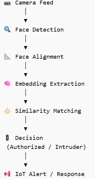 - Recognition: Compares the live embedding to the authorized database using a distance threshold ($d \le \tau$).